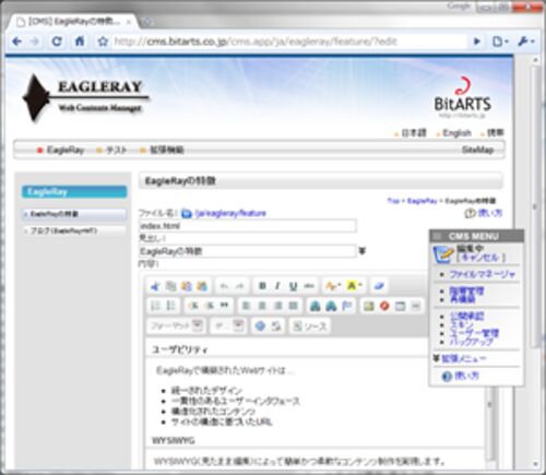 拙作EagleRay CMSのデモサイトをとりあえず公開しました。入っているコンテンツはヘボヘボでごめんなさいです。 この製品を作って4年にもなりますが、やっとのデモサイト。 Web制作会社などが自社ブランドで販売できるOEM販売向けの商材です。4年の歴史と40…