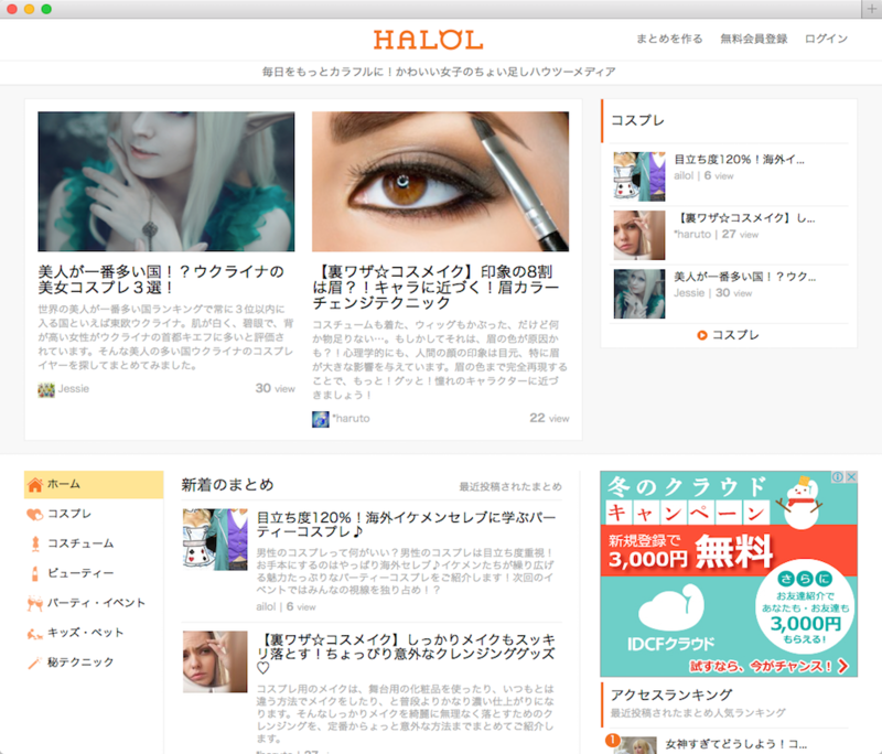 ピクシブ子会社のCure,Inc.が運営する新しいキュレーションサイト「HALOL -ハロル-」がオープンしました!